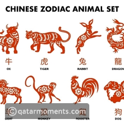 Chinese zodiac, or shengxiao (/shnng-sshyao/ 'born resembling'), unlike the general zodiac, is represented by 12 zodiac animals. In order, they are the Rat, Ox, Tiger, Rabbit, Dragon, Snake, Horse, Goat, Monkey, Rooster, Dog, and Pig.